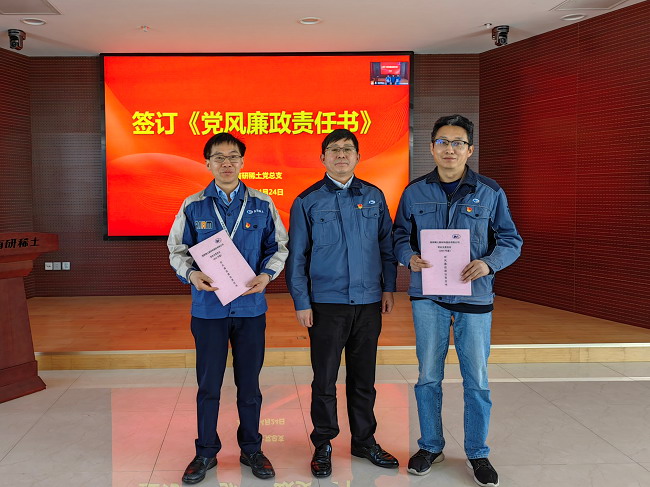 许国栋传达了中国有研2023年党建暨党风廉政建设和反腐败工作会精神,并以中央纪委国家监委通报的违反中央八项规定精神的典型案例为鉴,进行了廉洁谈话和“五一”节、端午节前有关提醒。他强调,要持之以恒地加强党建和党风廉政建设工作,发扬斗争精神、敢于自我革命,以高质量党建和党风廉政建设新成效推进有研稀土实现高质量发展。
