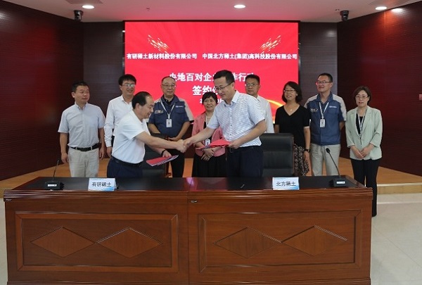在深入、坦诚交流座谈的基础上,双方代表签署了《央地企业协作行动协议》。双方商定,在“十四五”开局的新形势下,紧紧围绕协作行动五个“聚焦”“八个一”重点任务要求,遵循平等自愿、优势互补、互利共赢的原则,在资源共享、产业互融、科技创新、经验交流、人才培养等方面开展务实协作,携手并肩展现新担当、新作为,助推我国稀土行业科技进步和产业绿色低碳高质量发展。