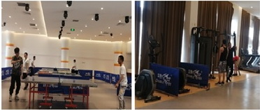——配备健身器材,强身健体,丰富员工业余文化生活。公司在多功能活动中心,开辟宽敞的健身房,安装了跑步机、杠铃、哑铃等健身器械,添置了乒乓球桌、茶座等休闲设施,供员工工作之余休闲锻炼。