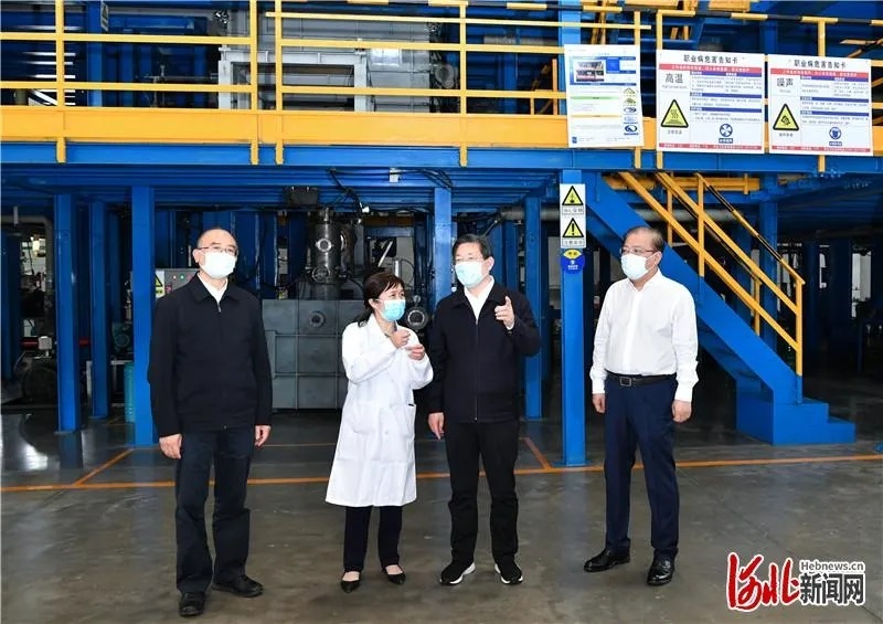 5月17日,河北省委书记、省人大常委会主任王东峰,省委副书记、省长许勤到有研稀土考察调研,有研集团党委副书记、总经理熊柏青,首席科学家黄小卫院士陪同调研。