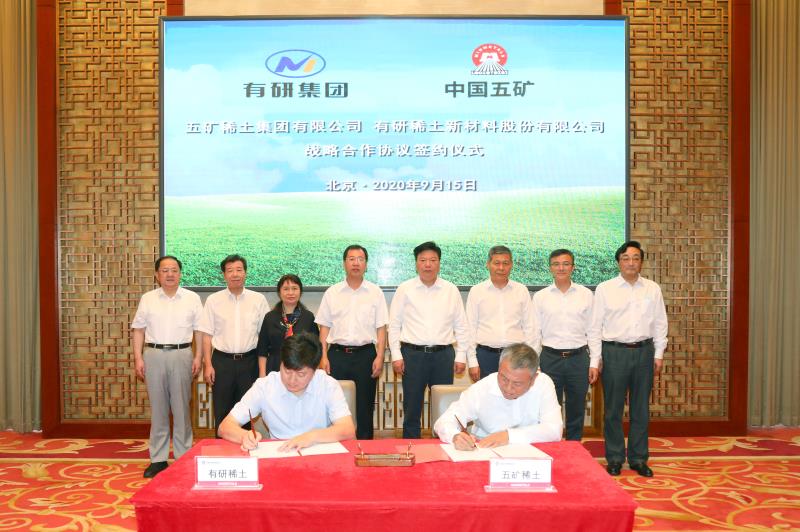 9月15日,有研集团党委书记、董事长赵晓晨一行赴中国五矿集团总部,与中国五矿党组副书记、总经理国文清等就在稀土等领域开展全方位战略合作举行会谈,并一起见证了有研稀土新材料股份有限公司与五矿稀土集团有限公司签署战略合作协议。
