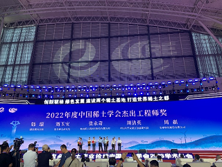 中国工程院院士干勇、王海舟分别作了题为《开创我国稀土技术创新和产业发展的新局面》 《质量基础支撑全产业链高质量发展》的大会报告。会议颁发了2022年度稀土科学技术奖、2022年度中国稀土学会杰出工程师奖,其中,有研稀土与甘肃稀土等共同完成的“稀土湿法冶炼过程中钙离子定向富集去除技术开发及产业化”项目获得稀土科学技术一等奖,有研稀土张永奇正高级工程师荣获2022年度中国稀土学会杰出工程师奖。