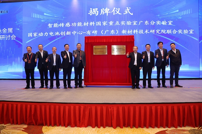 开幕式还举办了智能传感功能材料国家重点实验室广东分实验室和国家动力电池创新中心-有研(广东)新材料技术研究院联合实验室揭牌仪式。