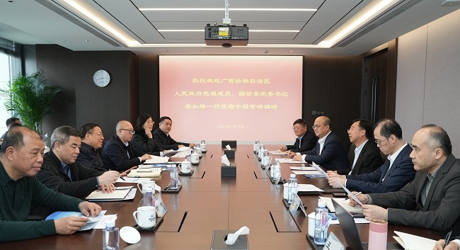 2月26日,广西壮族自治区人民政府党组成员、国资委党委书记秦如培一行到访中国有研。中国有研党委书记、董事长赵晓晨接待来访。秦如培一行参观了中国有研展室,详细了解中国有研发展历程、科技创新及产业发展等情况,随后双方进行了座谈交流。
